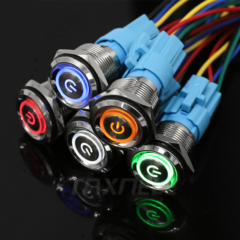12 Mét LED Light Kim Loại Push Button Chuyển 5 Colors 4 Pin Hình Khuyên Điện Xe Tín Hiệu Power Button Chuyển 3V 6V 12V 24V 220V