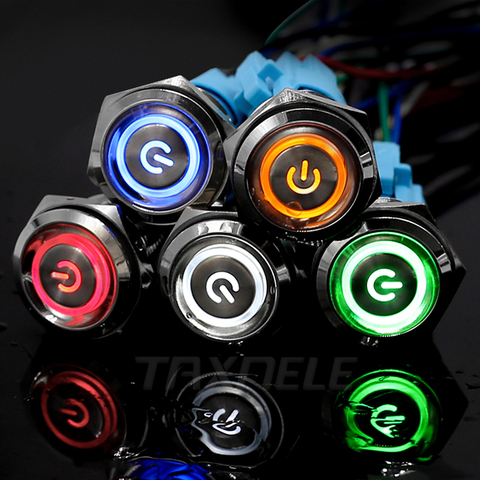 19Mm Kim Loại Nút Nhấn Chuyển Đổi 12V 24V 110V 220V LED Đèn Điện Chiếu Sáng Tín Hiệu Đèn Momentary Latching Chuyển Đổi Vòng Ánh Sáng